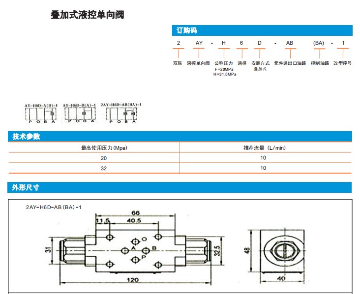 AY-H6D-A(B)-1,AY-H6D-B(A)-1,2AY-H6D-AB(BA)-1,疊加式液控單向閥