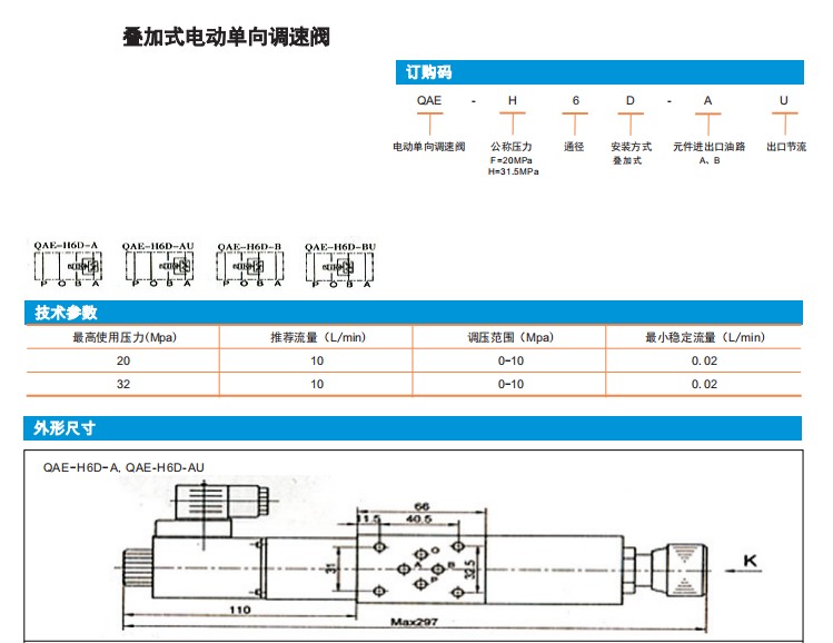 詳細信息 QAE-H6D-A,QAE-H6D-AU,QAE-H6D-B,QAE-H6D-BU,疊加式電動單向調(diào)速閥