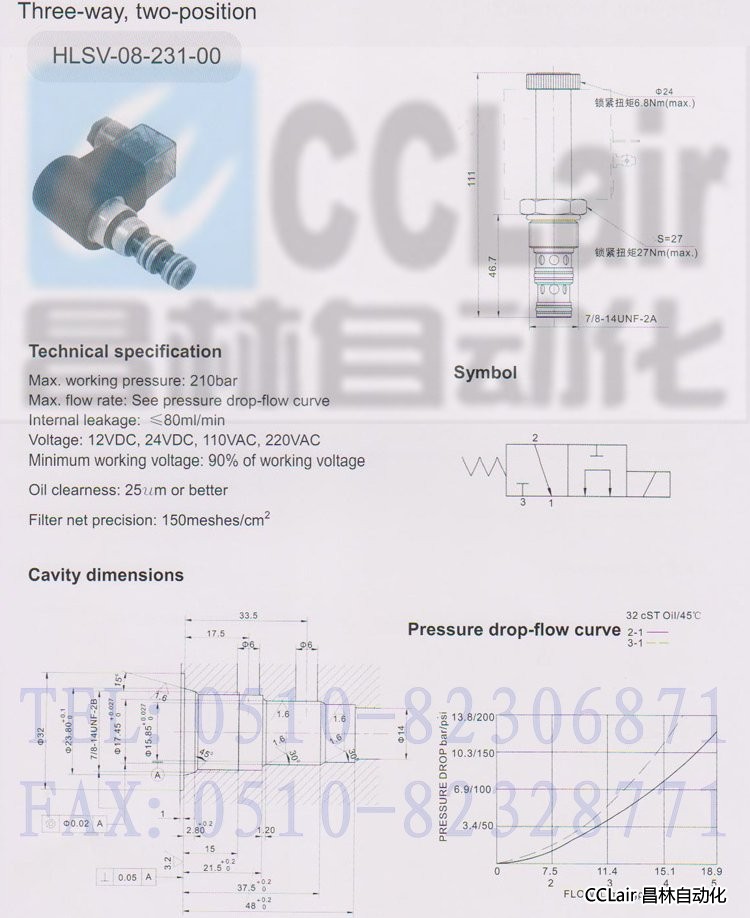 產(chǎn)品: 瀏覽次數(shù):575HLSV-08-231-00,二位三通電磁閥