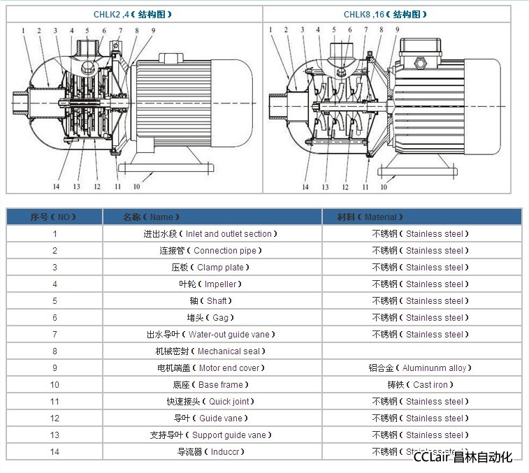 CHL,CHLK和CHLF(T)不銹鋼輕型多級離心泵采用了免修機械密封。泵的過流部件均采用不銹鋼材料(304或316)制成,具有低噪音,耐輕腐蝕,外形美觀、體積小、重量輕、使用壽命長等特點。
