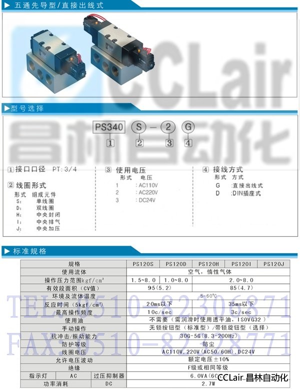 詳細(xì)信息 PS340S,PS340D,PS340H,PS340I,PS340J,五通先導(dǎo)型電磁閥