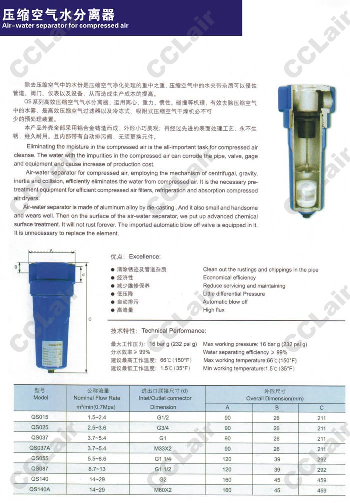 詳細(xì)信息 QS015,QS025,QS037,QS037A,QS055,QS087,QS140,QS140A,壓縮空氣水分離器,無錫昌林