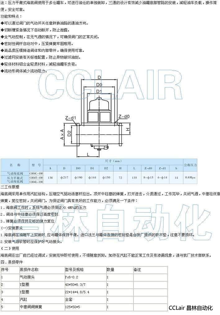 C804L-100,C804T-100,C804C-100,壓力平衡式氣動(dòng)海底閥