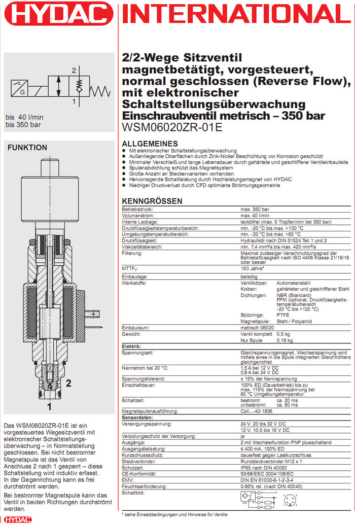 首頁 > 產(chǎn)品&解決方案 > WSM06020Z-01E-C-N-12DG,WSM06020Z-01E-C-N-24DG,HYDAC電磁2/2方向座閥