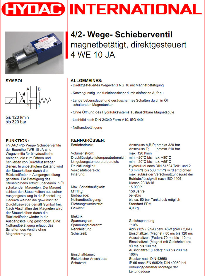 首頁 > 產(chǎn)品&解決方案 > 4WE10JAS01-12DG/V,4WE10JAS01-24DG/V,HYDAC電磁4/2方向滑閥