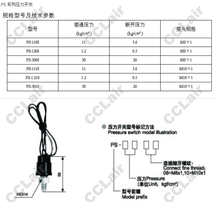 詳細信息 PS-1108,PS-1208,PS-3008,PS-1110,PS-1210,PS-3010,壓力開關