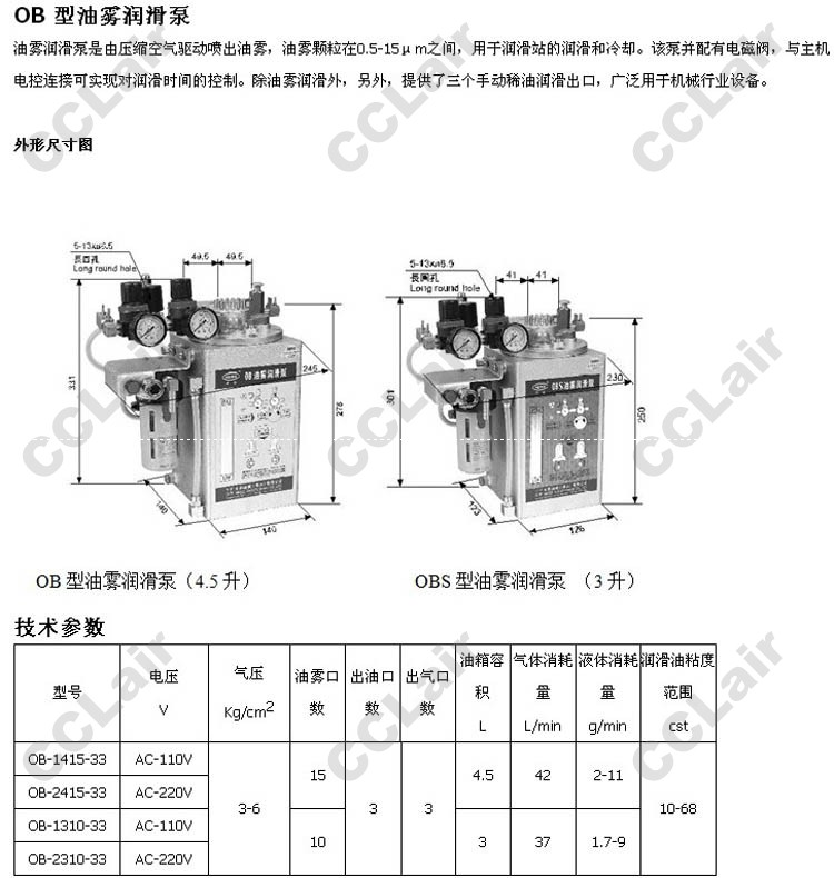 詳細(xì)信息 OB-1415-33,OB-2415-33,OB-1310-33,OB-2310-33,油霧潤(rùn)滑泵