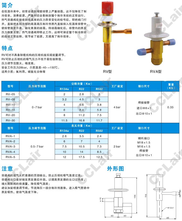 詳細信息 RV-05,RV-08,RV-10,RV-15,RV-20,RV-30,RVA-1,RVA-2,RVA-3,RVA-4,RVA-5,熱氣旁通閥