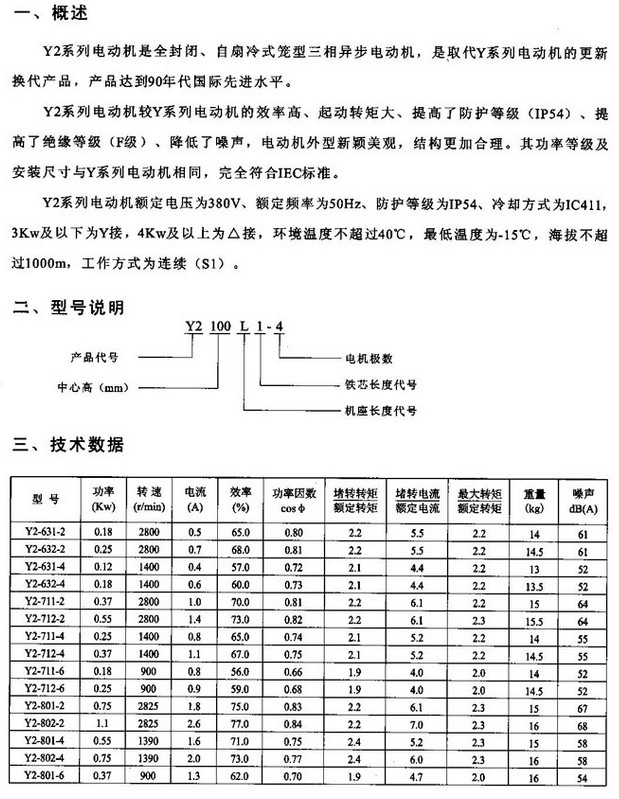 Y2-801-8,Y2-802-8,Y2-90S-2,Y2-90L-2,Y2-90S-4,Y2-90L-4,Y2-90S-6,Y2-90L-6,