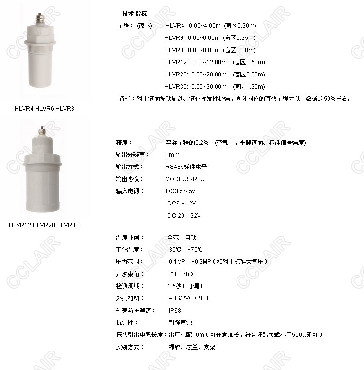 » HLVR4,HLVR6,HLVR8,HLVR12,HLVR20,HLVR30,HLVR數(shù)字基本型超聲波液位變送器