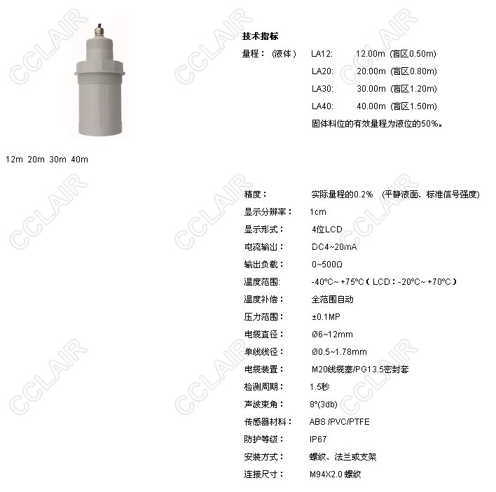 » LA12,LA20,LA30,LA40,大量程超聲波探頭