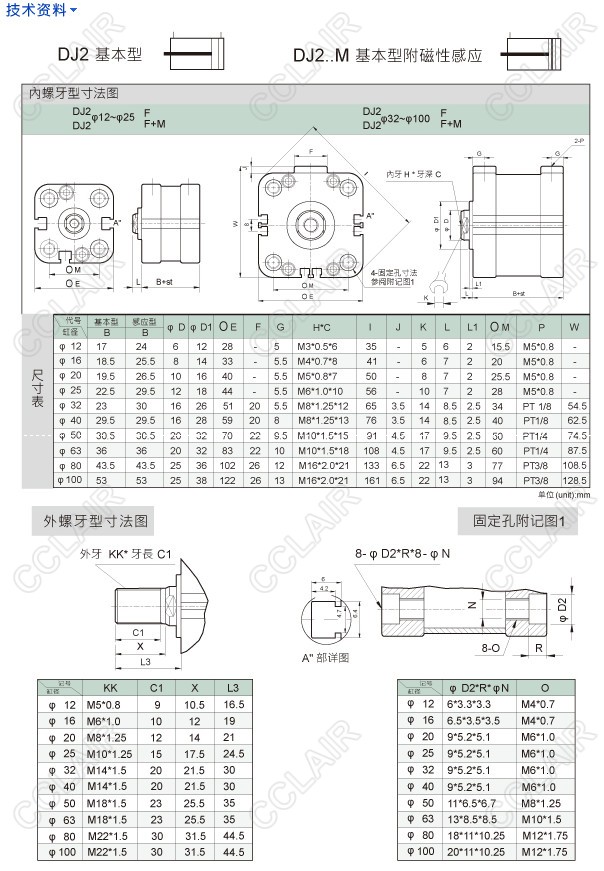 DJ2,DJ2D,DJ2Y,DJ2DY,DJ2E,DJ2EY,DJ2B,DJ2BY,DJ2T,DJ2M,DJ2-12M5,DJ2D-12M10,hinaka超薄型氣缸