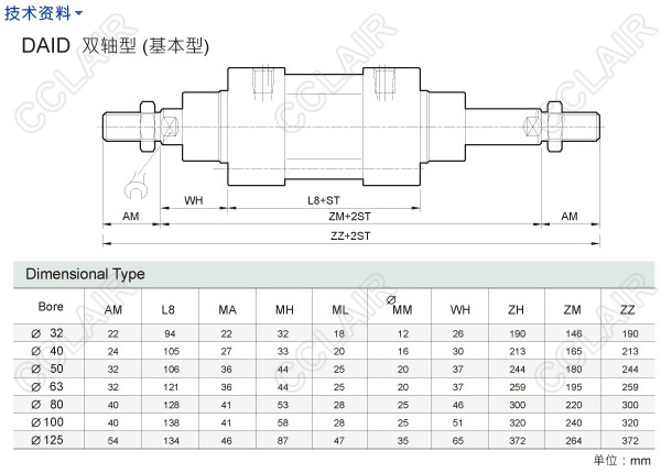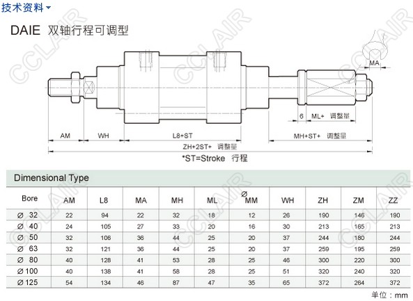 DAI-32M50,DAID-32M250,DAIE-40M50,DAIM-50M50,DAIF-63M50,DAIB-50M250,DAIT-80M250,DAIC-100M50,hinaka標(biāo)準(zhǔn)型