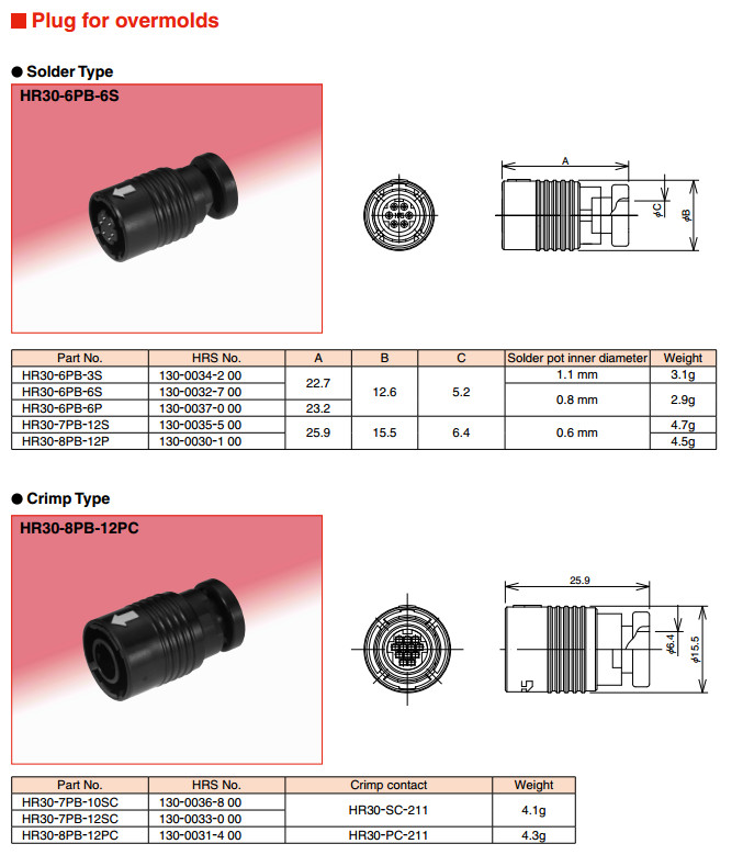 HR30-7P-10SC,HR30-7P-12SC,HR30-8P-12PC,HR30-6PB-3S,HR30-6PB-6S,HR30-6PB-6P,