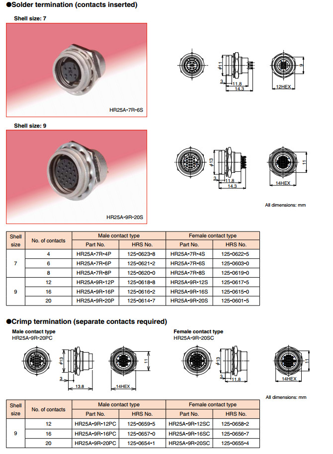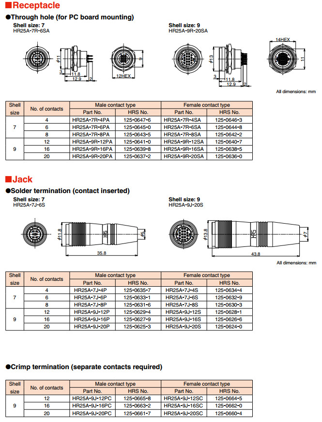 HR25A-7P-4S,HR25A-7P-6S,HR25A-7P-8S,HR25A-9P-12S,HR25A-9P-16S,HR25A-9P-20S,