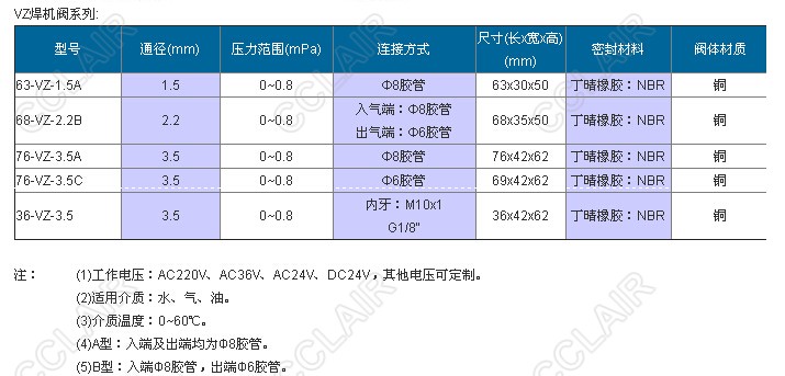 63-VZ-1.5A,68-VZ-2.2B,76-VZ-3.5A,76-VZ-3.5C,36-VZ-3.5,焊機(jī)專用電磁閥