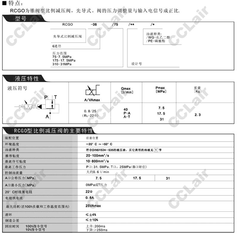 詳細(xì)信息 RCGO-06/75,RCGO-06/175,RCGO-06/310,比例減壓閥