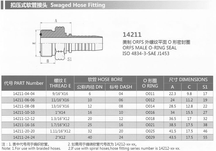 詳細(xì)信息 14211-04-04,14211-06-06,14211-08-08,14211-10-10,14211-12-12,14211-20-20,扣壓式軟管接頭 14211-16-16,14211-24-24,