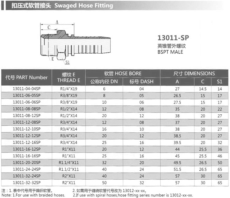 13011-04-04SP,13011-06-05SP,13011-08-08SP,13011-12-12SP,13011-20-20SP,13011-32-24SP,扣壓式軟管接頭