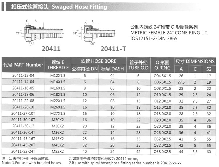20411-12-04,20411-27-10T,20411-30-12,20411-45-16T,20411-52-24T,扣壓式軟管接頭