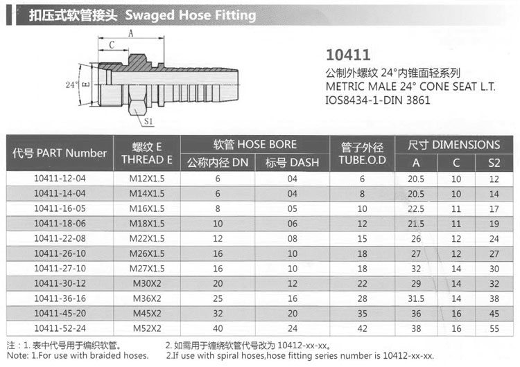 詳細信息 10411-12-04,10411-26-10,10411-30-12,10411-45-20,10411-52-24,扣壓式軟管接頭 10411-14-04,10411-16-05,10411-18-06,10411-22-08,10411-27-10,10411-36-16,
