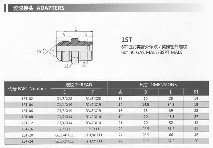 詳細(xì)信息 1ST-02,1ST-04,1ST-06,1ST-08,1ST-12,1ST-16,1ST-20,1ST-24,過(guò)渡接頭