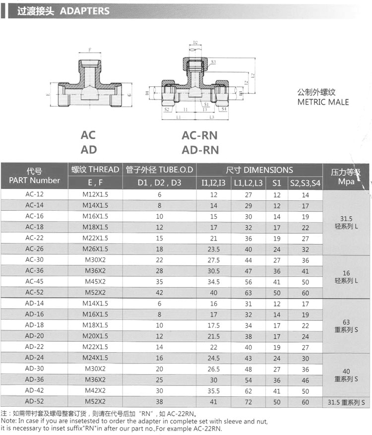 詳細(xì)信息 AC-12,AC-14,AC-16,AC-18,AC-22,AD-24,AD-30,AD-36,AD-42,AD-52,過渡接頭 AC-26,AC-30,AC-36,AC-45,AC-52,AD-14,AD-16,AD-18,AD-22,