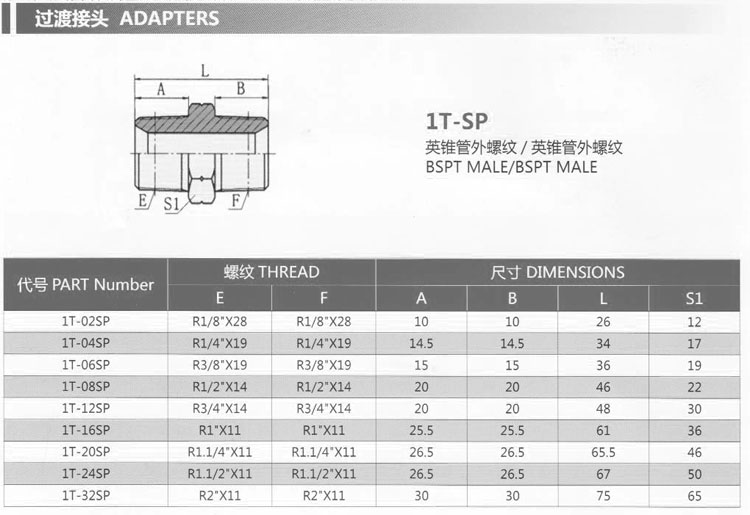 詳細(xì)信息 1T-02SP,1T-04SP,1T-06SP,1T-08SP,1T-12SP,1T-16SP,1T-20SP,1T-24SP,1T-32SP,過(guò)渡接頭