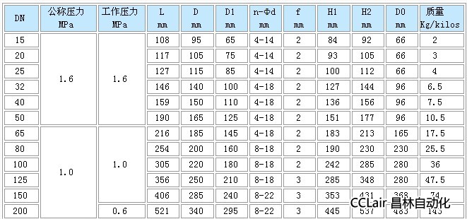壓力等級(jí):PN(MPa) 0.6 1.0 1.6
