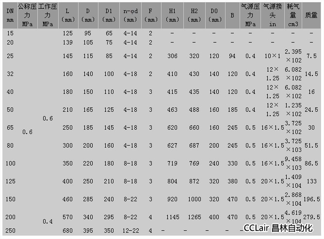 英標(biāo)氣動常開型隔膜閥主要尺寸及重量: