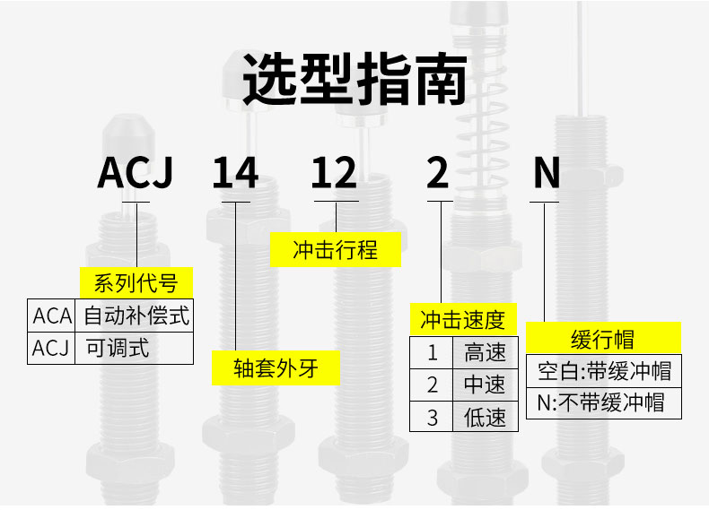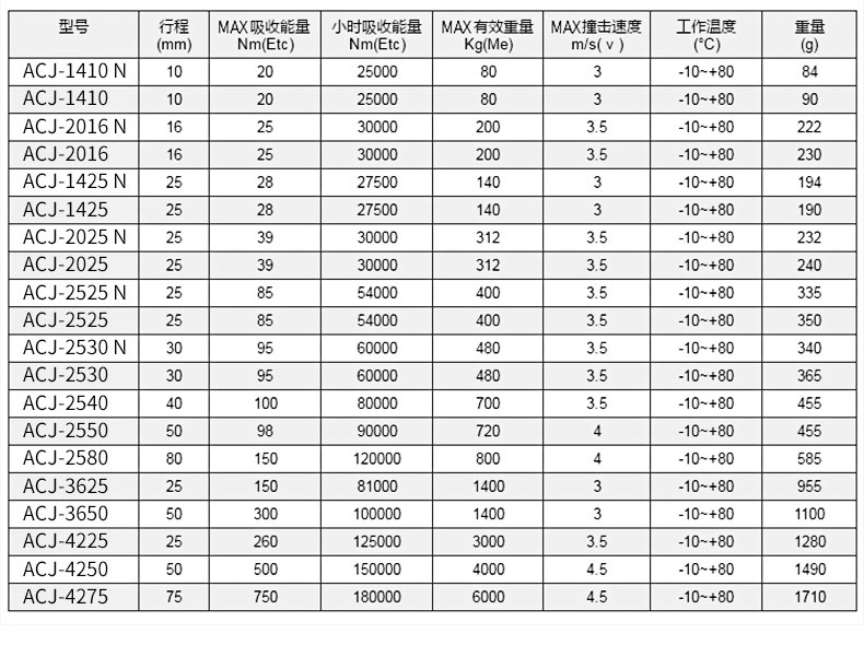 可調(diào)式2550油壓緩沖器ACJ1007,ACJ1210,ACJ1412,ACJ2020,ACJ2550,ACJ2725,ACJ2750,ACJ3325,ACJ3350,ACJ3625,ACJ3650,ACJ4225,ACJ4250,ACJ4275阻尼器