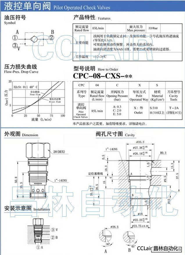 CPC-08-AXS,CPC-04-CXS,CPC-08-EXS,CPC-08-AXH,CPC-08-CXH,CPC-08-EXH,插式液控單向閥