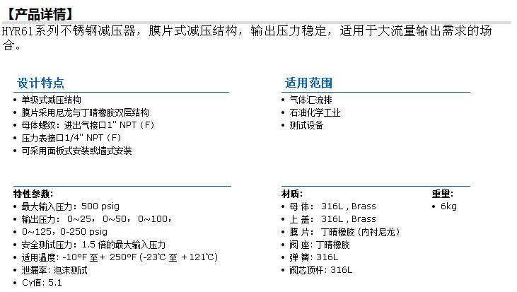 HYR61LAFGG06,HYR61LBFGG06,HYR61LGFKG06,HYR61BAFIG06,HYR61BAFHW08,HYR61BGFLW08,不銹鋼減壓器