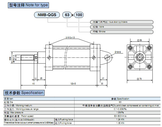 NMB-QGS63×100,內(nèi)擺門氣缸