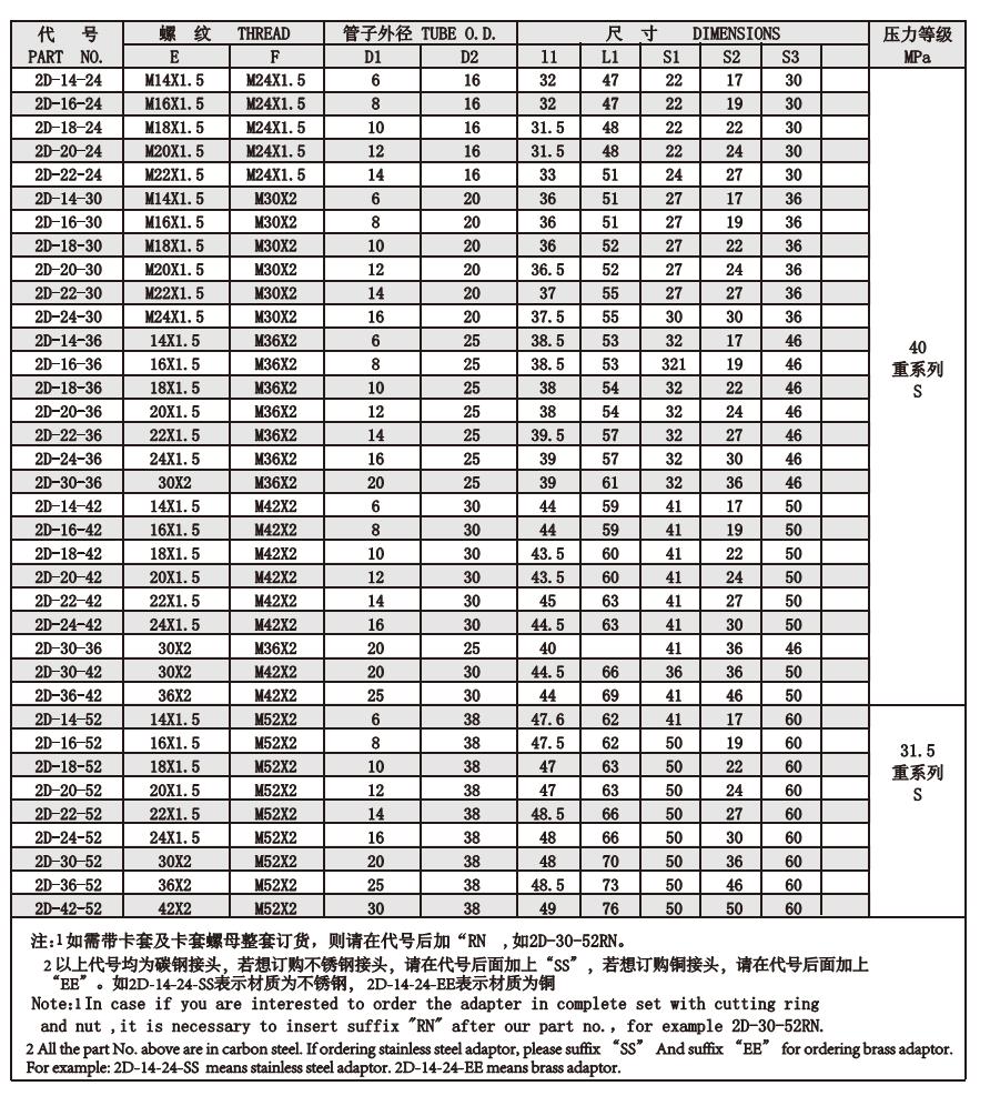 2D-14-16,2D-16-18,2D-18-20,2D-20-22,2D-30-36,2D-36-52,2D-42-52,內(nèi)螺紋轉(zhuǎn)換接頭