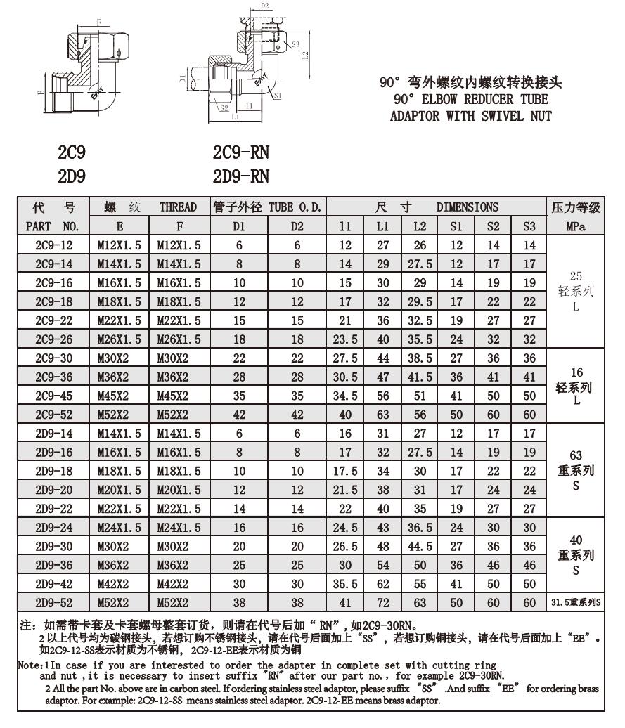 詳細(xì)信息 2C9-12,2C9-22,2C9-30,2C9-45,2C9-52,2D9-14,2D9-22,2D9-36,2D9-42,2D9-52,內(nèi)螺紋轉(zhuǎn)換接頭