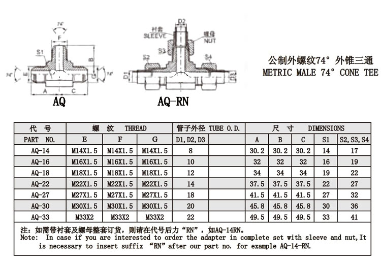 詳細信息 AQ-14,AQ-16,AQ-18,AQ-22,AQ-27,AQ-30,AQ-33,錐面密封接頭