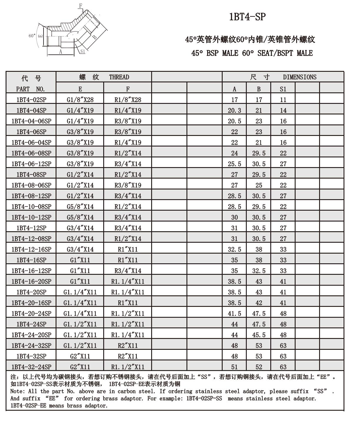 1BT4-02SP,1BT4-04SP,1BT4-06SP,1BT4-08SP,1BT4-12SP,1BT4-16SP,1BT4-20SP,1BT4-24SP,1BT4-32SP,錐面密封接頭