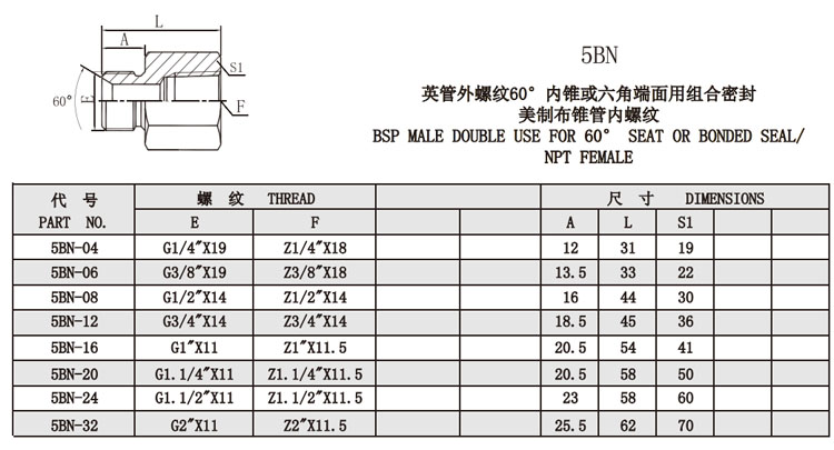 詳細(xì)信息 5BN-04,5BN-06,5BN-08,5BN-12,5BN-16,5BN-20,5BN-24,5BN-32,管內(nèi)螺紋接頭