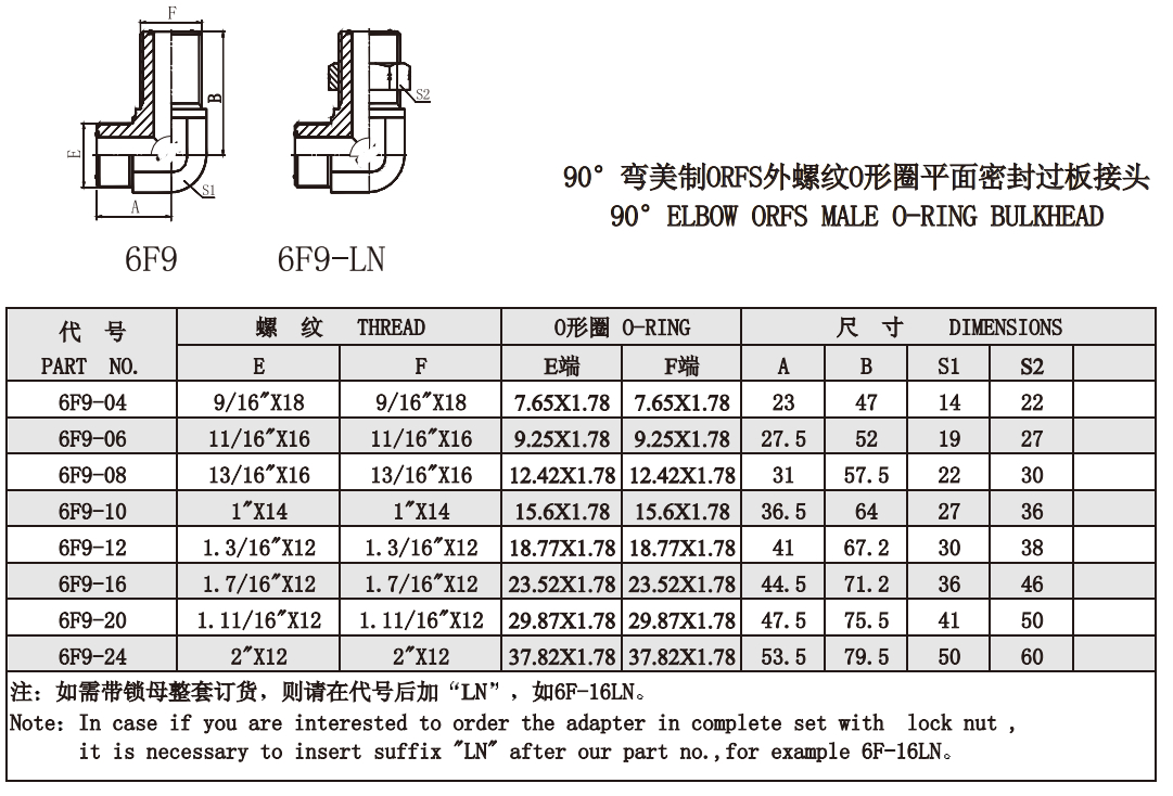 6F9-04,6F9-06,6F9-08,6F9-10,6F9-12,6F9-16,6F9-20,6F9-24,平面密封過板接頭