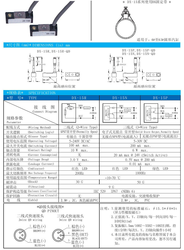 DX-15R,DX-15N,DX-15P,磁性開關