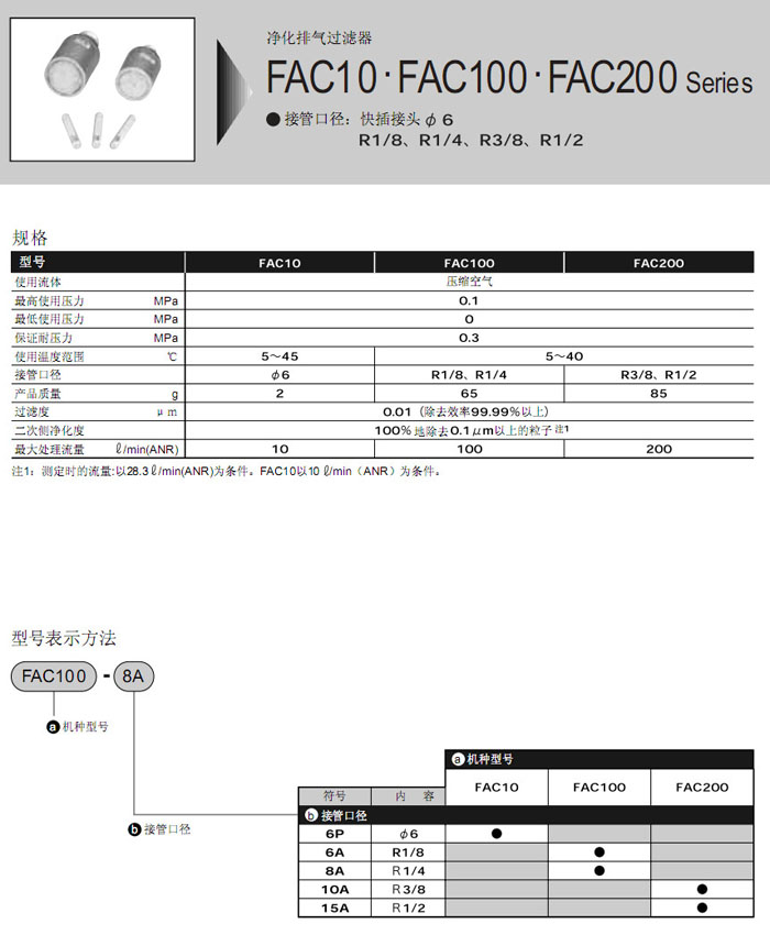 詳細(xì)信息 FAC10-6P,FAC100-6A,FAC100-8A,FAC200-10A,FAC200-15A,CKD凈化排氣過濾器