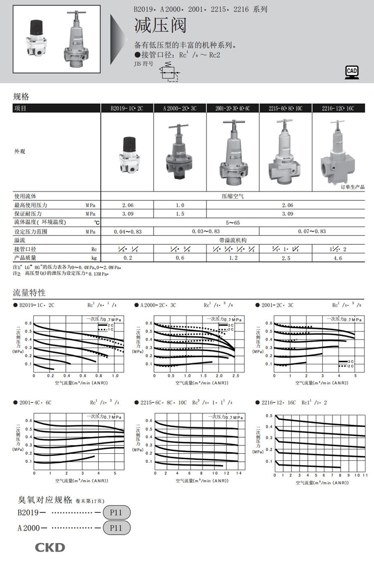 B2019-1C,A2000-2C,2001-2C,2215-6C,2215-8C,2215-10C,2216-12C,CKD減壓閥