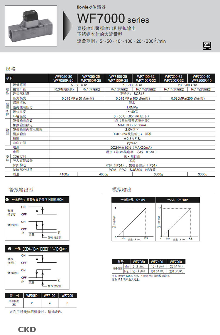 WF7050R-20,WF7050R-25,WF7100R-25,WF7100R-32,WF7200R-32,WF7200R-40,CKD傳感器