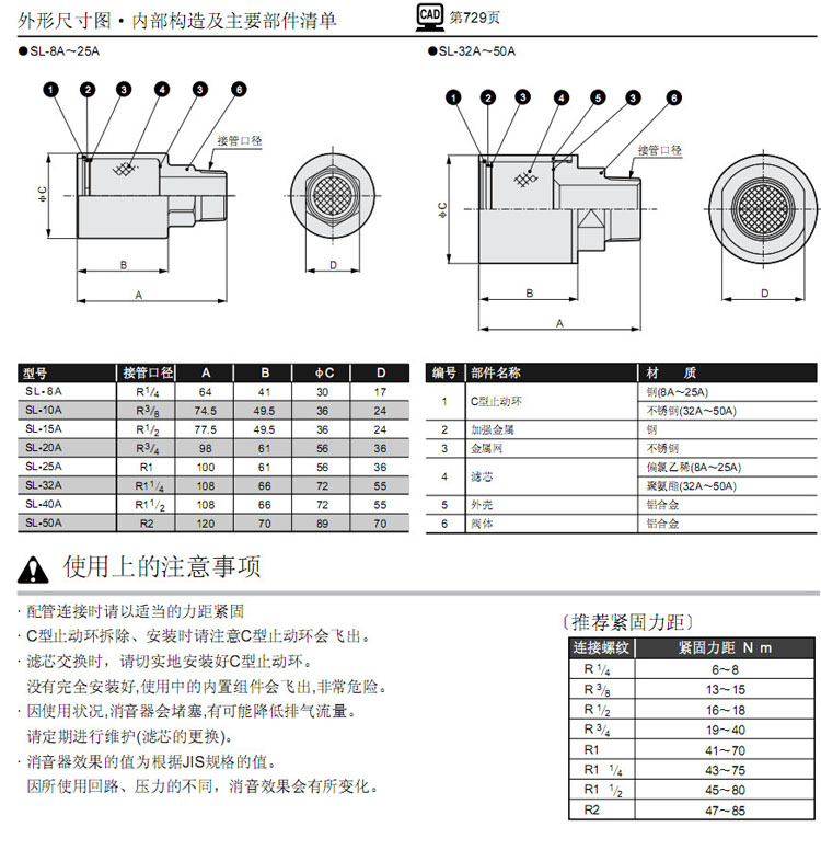 詳細(xì)信息 SL-8A,SL-10A,SL-15A,SL-20A,SL-25A,SL-32A,SL-40A,SL-50A,CKD消音器