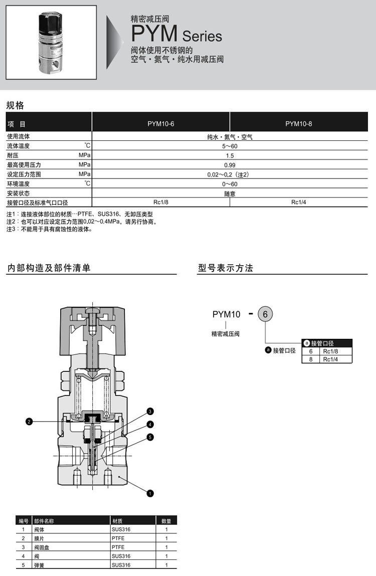 詳細(xì)信息 PYM10-6,PYM10-8,CKD精密減壓閥