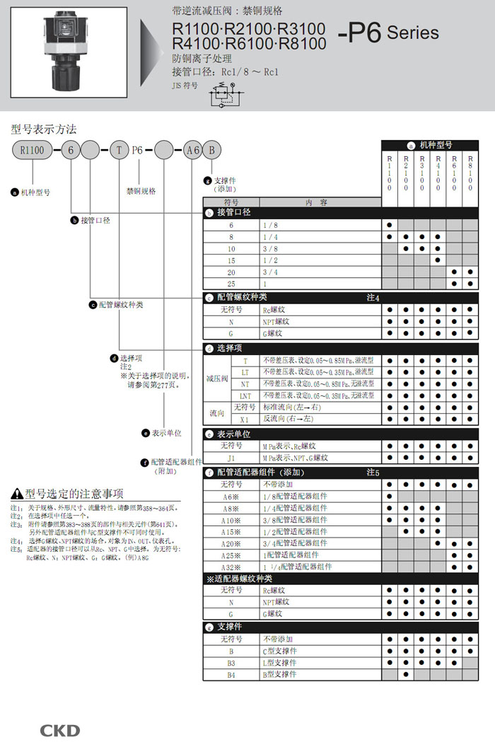 R1100-6,R1100-8,R3100-8,R3100-10,R4100-8,R4100-10,R4100-15,R6100-20,R8100-25,R6100-25,R8000-20,CKD減壓