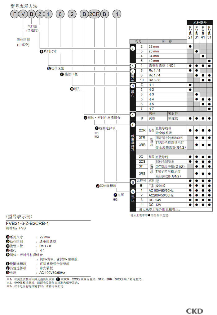 FVB21-6-Z-B2CR,FVB31-6-3-B2CR,FVB41-8-5-B2CR,FVB51-8-5-B2CR,FVB51-8-6-B2CR,CKD直動(dòng)式2通電磁閥