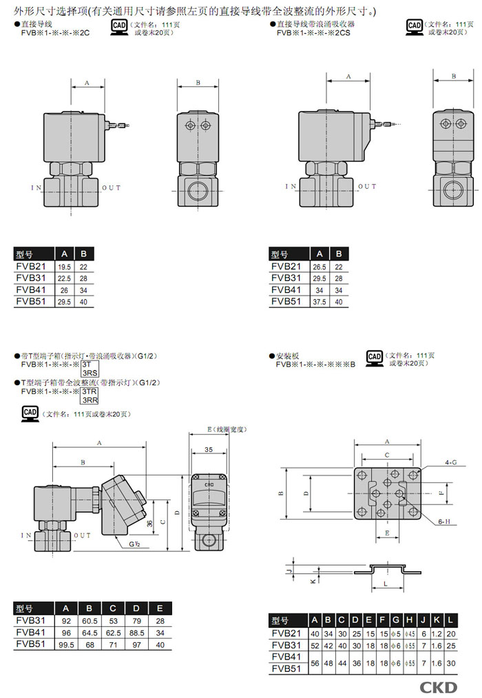 詳細(xì)信息 FVB21-6-Z-B2CR,FVB31-6-3-B2CR,FVB41-8-5-B2CR,FVB51-8-5-B2CR,FVB51-8-6-B2CR,CKD直動(dòng)式2通電磁閥