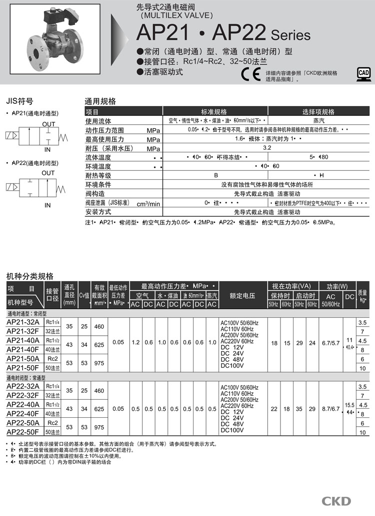 AP22-50F-N4A,AP22-50F-N4K,AP22-50F-N4H,AP22-50F-N5A,AP22-50F-N5K,AP22-50F-N5H,CKD先導(dǎo)式2通電磁閥